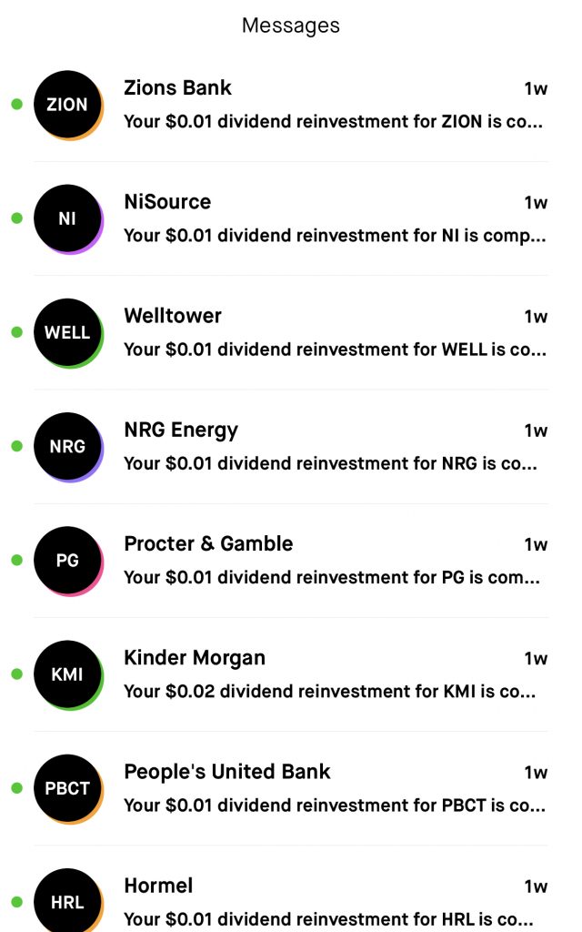 $0.01 dividend has been reinvested. I like this – as its a reminder that your stocks are always working for you. What if SPY or other ETFS gave you an activity feed of all their adjustments, dividend reinvestments. That would be neat and remind people of what’s going on.