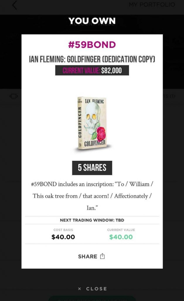 Rally Road is an app which lets you buy shares in collectible assets, like a Michael Jordan basketball card or a Aston Martin or a Rolex watch. Rally holds the assets in secure storage. Then every few months they open up trading windows so you can sell your shares or purchase others. There’s some chat around how art and other collectibles outperform the S&P – but I’m more doing it for fun.